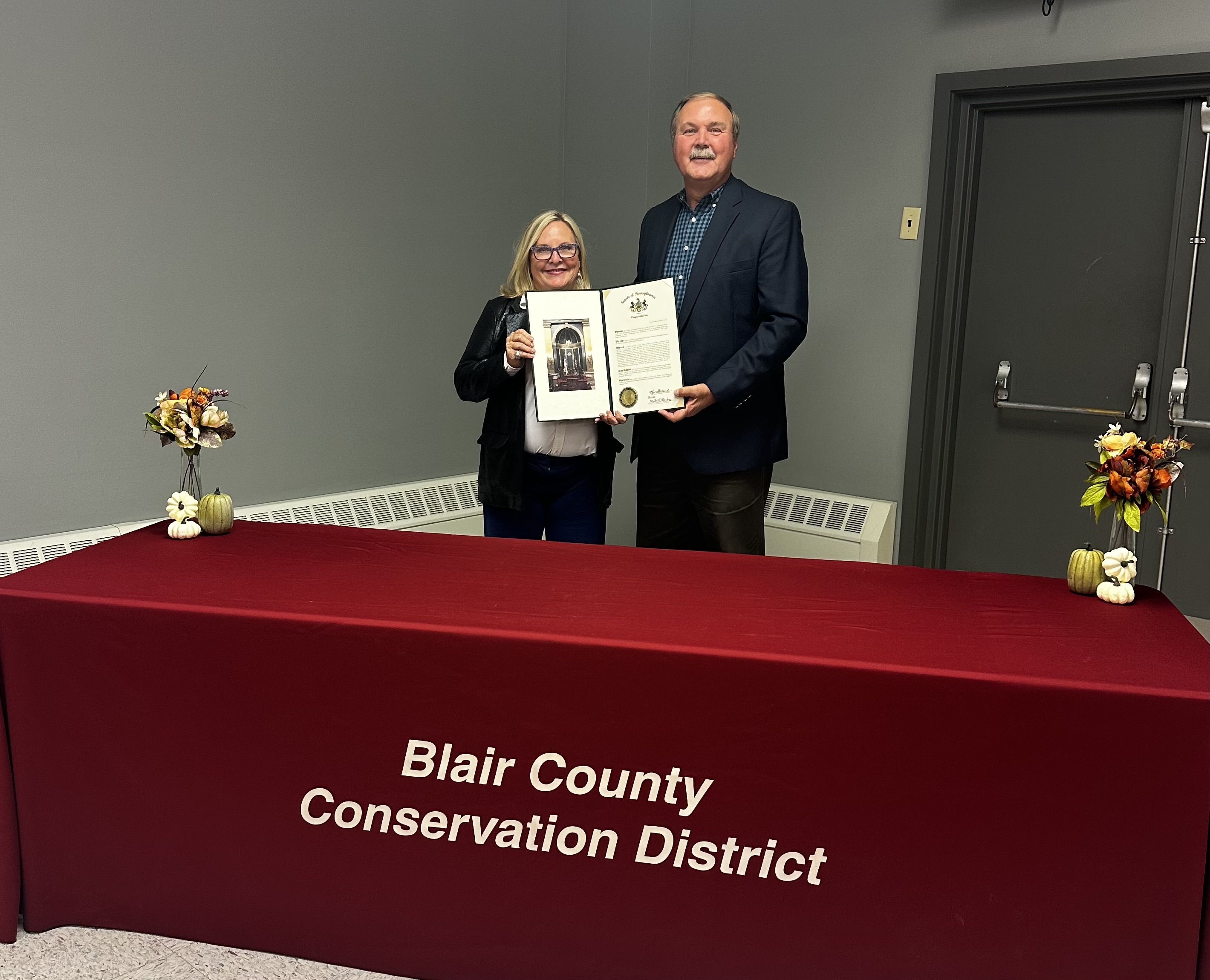 The pink ribbon is a symbol of hope, strength and solidarity in the fight against breast cancer. It reminds us to support those affected, promote early detection and raise awareness about the importance of knowing your risks. You can assess your personal breast cancer risk using this free online risk calculator. Out and About in the 30th DistrictBlair County Conservation District Annual Banquet The Blair County Conservation District (BCCD) held its 2025 Annual Banquet to highlight district activities and accomplishments. I was pleased to present a citation to Blaine Smith, BCCD board member who has served the district for 31 years. Congratulations to Blaine for his many years of dedicated service and the BCCD for a successful year! Also, I ran into the Blair County Dairy Princess, Rylee Stultz. She is a great advocate for agriculture. Huntingdon County EMS Town Hall Meeting The Huntingdon County Commissioners and Southern Alleghenies EMS Council (SAEMS) held a Townhall Meeting at the Smithfield Fire Department to discuss EMS coverage in Huntingdon County. Jordan Anthony from SAEMS presented updates on EMS coverage in Huntingdon County, and the providers and local elected officials discussed concerns related to recruitment, retention and education. It was very informative and is the start of a collaborative effort to ensure that residents have access to quality EMS services. Juniata River Valley Chamber After-Hours Event The Juniata River Valley Chamber of Commerce After-Hours Event was held at Let-Us-Grow Greenhouses located at 5340 East Back Mountain Road in Belleville. Let-Us-Grow is a local hydroponic greenhouse and farm which specializes in a wide variety of chemical free nutrient rich lettuces and herbs. They also offer farm raised beef and pork. Blair County Prayer Breakfast We had a spirit filled time this week at the Leaders of Faith Prayer Breakfast of the Alleghenies. The breakfast was held in Blair County with Keynote Speaker, Rev. Dr. Ed Glover from Urban Impact in Pittsburgh. Pastor Ed or “PED” has a ministry on the North side of Pittsburgh helping at risk children. Pictured with me are State Rep. Scott Barger and Pastor Ed. 51st Annual Folk Festival Fulton County held their 51st Annual Folk Festival. The parade showcases what a great community this is! I enjoyed participating in the festivities! 7th Annual Workplace Equality Celebration The Huntingdon Mifflin Juniata Employment Coalition held their 7th Annual Workplace Equality Celebration highlighting employers and employees who demonstrate an inclusive culture that is the cornerstone of a high-performing winning team. This employer-employee recognition event was held at Juniata Valley Behavioral and Developmental Services in downtown Lewistown. Mifflin County Elected Officials 100th Fall Convention Mifflin County held their Elected Officials 100th Fall Convention with a variety of vendors and speakers. 100th Recognitions were presented to the Association by John Breneman from my Lewistown District Office and Dan Auker from Rep. David Rowe’s Office.