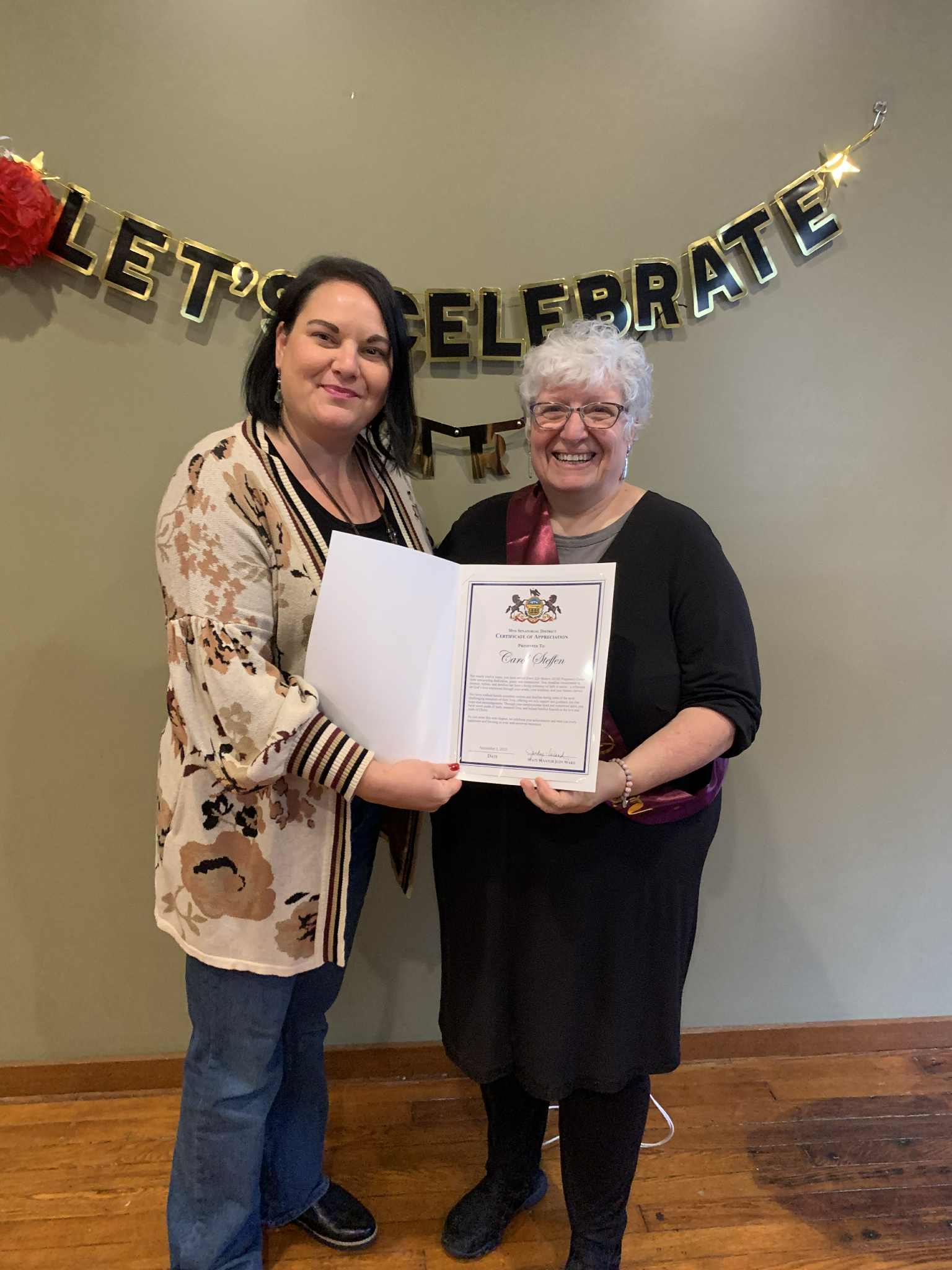 We set aside Veterans Day to acknowledge and celebrate our fellow citizens who answered the call to serve in the military, securing and defending freedom we enjoy year-round. We owe a debt of gratitude to veterans locally and across this great nation. One way we show our appreciation is through the Veterans Trust Fund, which supports organizations that assist Pennsylvania veterans and their families in need of housing, financial help, food, training, recovery and more. Find out how you can donate to this fund here. Out and About in the 30th DistrictWell Wishes in Your Retirement! Congratulations to Carol Steffen, who retired as the executive director of Every Life Matters (ELM) Pregnancy Center in Tyrone, Blair County. Carol has been an important part of this community for nearly 12 years in this role, and has been steadfast in her commitment to women, babies and families! Thank you, Carol, for all you have done! Fostering a Better Pennsylvania Representative Scott Barger and I met with members of the PA Family Institute’s Church Ambassador Network, Keystone Family Alliance and FigTree Health to discuss efforts to improve the child fostering program in Pennsylvania. Across our Commonwealth there are roughly 14,000 children seeking foster families, and every day this network works closely with churches throughout the state to build communities that support the children and families in need. Huntingdon County Chamber of Commerce Legislative Update The Huntingdon County Chamber of Commerce hosted a Budget and Legislative Update Breakfast at the Huntingdon Country Club. Representative Rich Irvin and I responded to questions related to the current budget process, business competitiveness policies and top 2026 priorities. I appreciated the opportunity to provide updates and share information with the Chamber and its members. Sweat for Vets Challenge A beautiful day for the annual “Sweat for Vets Challenge” race in Altoona. General John Kuntsbeck addressed the crowd before the race. This wonderful race is organized by Blair County veterans, and all proceeds raised supports veterans causes. Catholic Daughters of America Patriotic Rosary Such a pleasure to gather in prayer before the general election each year with Catholic Daughters of America and Bishop Mark Bartchak, from the Diocese of Altoona-Johnstown, for their 14th Annual Patriotic Rosary. Veterans Appreciation Luncheon It was an honor to show appreciation to local veterans and their families at my annual veterans’ luncheon today, in partnership with American Legion Post 516. Post Commander Sam Dunkle presented the 2025 General Soyster Awards to three community heroes at the event: Zenas Brehm, Robert Lingafelt, and Robert Taylor.